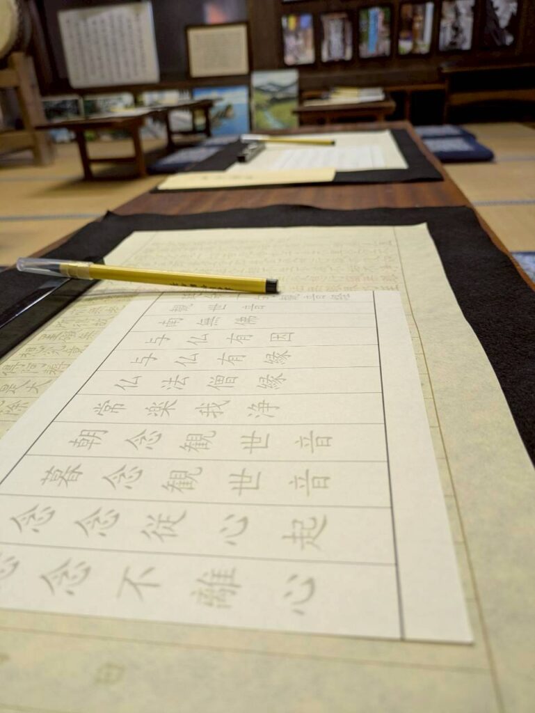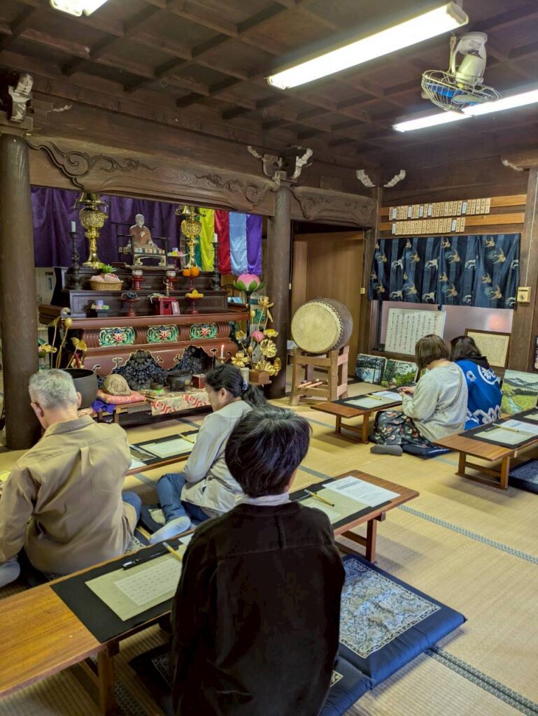 11月3日は文化の日。観音堂では毎年文化の香りのするイベントを計画しています。今年はいつもの大写経会とお茶会、そして大数珠回しそれと般若心経の読経会を行いました。とくにお茶会ではスタッフの皆さんの沢山のお茶碗が集まりました。作法は裏千家、表千家いりまじりお茶の作法を知らない人でもお抹茶を楽しんでいただけるように工夫していただきました。またボランティアでおはぎやバナナケーキもいただき大盛況でした。大数珠回し体験の後皆さんで般若心経を唱え仏さまにお祈りをしました。