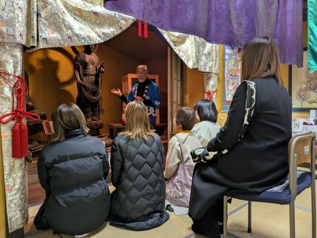 各々の祈願祭を執り行ってから、私のほうで仏様の説明もさせていただいてます。そのあと観音堂の役割、つまり「祈祷場」として来堂者、拝観者さまの幸せと厄除けを祈る場所だと説明します。そのうえでご本尊をはじめほかの仏さまにもまじかでお祈りしていただいております。